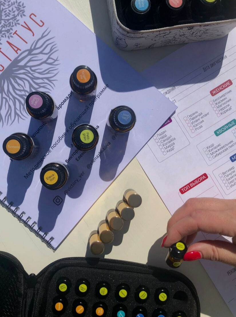 * Terapeitisko ēterisko eļļu testa laikā klients " noklausās" 64 ēteriskās eļļas. Novērtē savas sajūtas no aromāta. * Pamatojoties uz klienta vēlmēm, tiek sastādīta aromadiagnostikas karte, kas ļauj precīzi noteikt klienta fizisko un psihoemocionālo stāvokli. * Tiek veikta aromadiagnostiskās kartes analīze * Rezultātā tiek sastādīta psiholoģiskā un fiziskā stāvokļa korekcijas programma, kuras pamatā ir tīru terapeitisko ēterisko eļļu izmantošana.